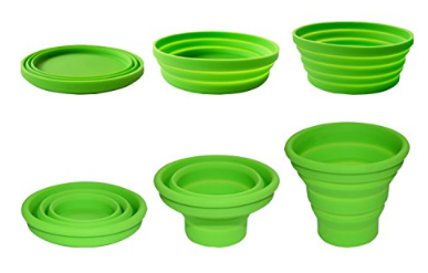 Lightweight and Compact - The foldable bowl weighs 2.1 oz. Just 0.4" (1cm) in thickness when fell. The foldable cup weighs 1.5 oz. Just 0.6" (1.8cm) in thickness when fell